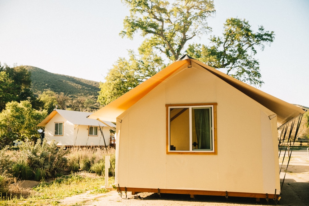 Personally, I loved the glamping tents. They were much nicer than the Yosemite Half Dome Village glamping tents and had outlets to charge devices, a space heater, fan, windows that opened, a lamp and chairs. Because the park gets so hot in the day, even in May, it was nice to have the fan running to cool it off before we went to bed.