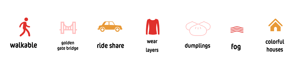 You’ll be taking a few Ubers and/or buses here and there, but you’ll also be walking a lot! Make sure to download the MUNI app so you can buy your bus/train tickets on your phone vs. trying to pay in cash.