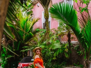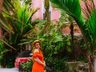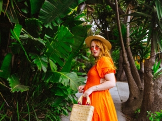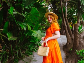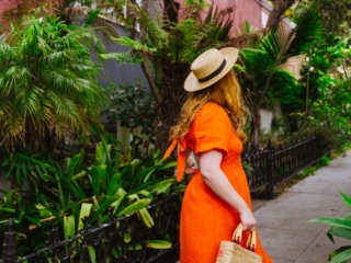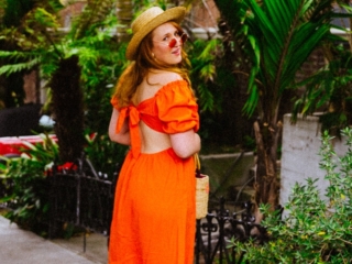 I’m OBSESSED with this orange open-back dress! I was showing it off on Stories the other day since I wore it to shoot around this pink house in San Francisco that TOTALLY feels like some tropical place, not a foggy Northern California city.