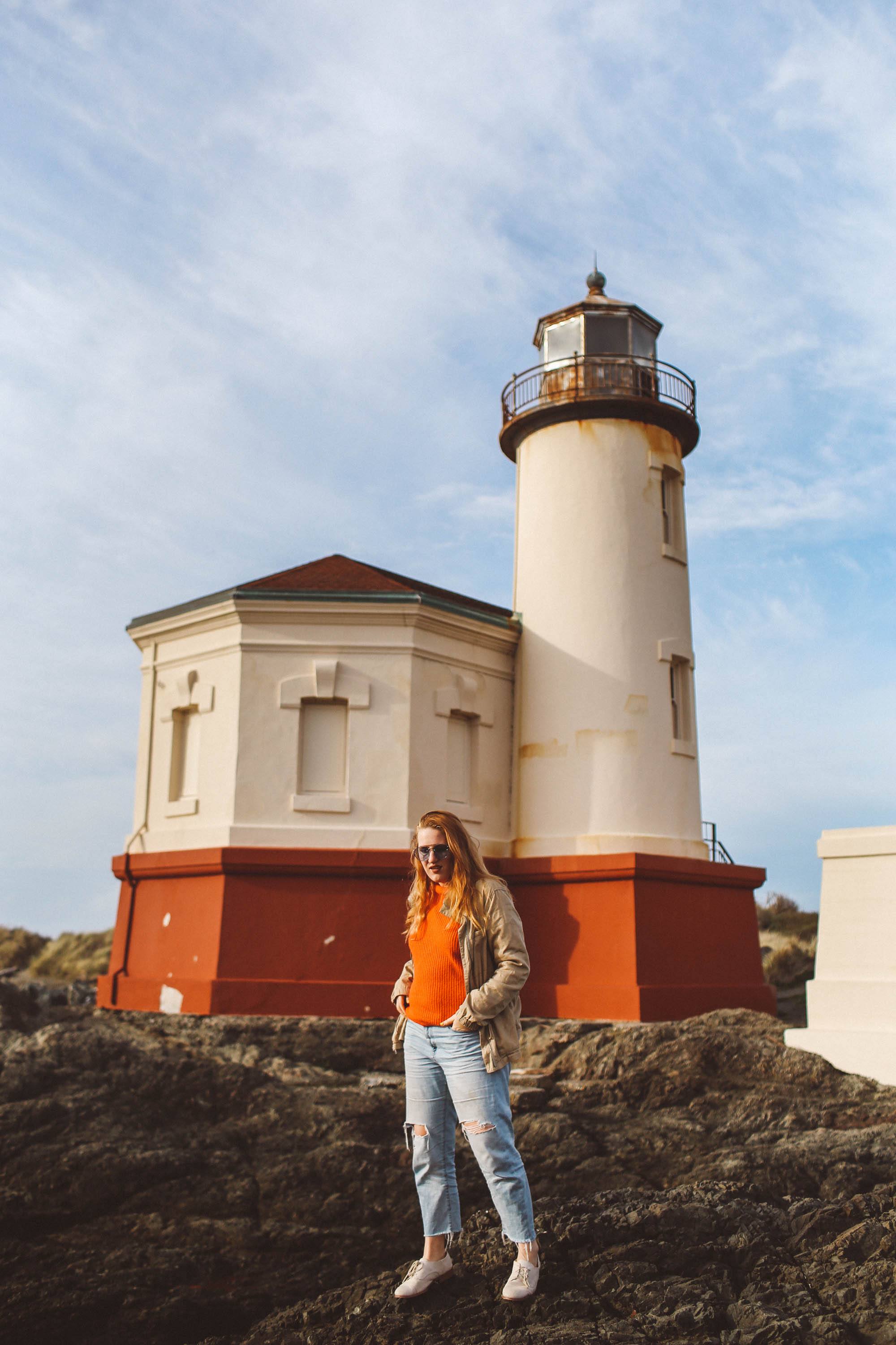 Oregon has SO many lighthouses and each one is unique in its own way. On this itinerary, the best two lighthouses to stop at are Coquille River Lighthouse, which is across the bay from Bandon. They’re open during the summer and is tucked right next to a pretty beach area. Also, stop at the Cape Blanco Lighthouse. During the summer you can drive up close to it, or park at the first lot and walk up. This was sweeping views of the ocean, as it sits high on a cliff. It can be windy.