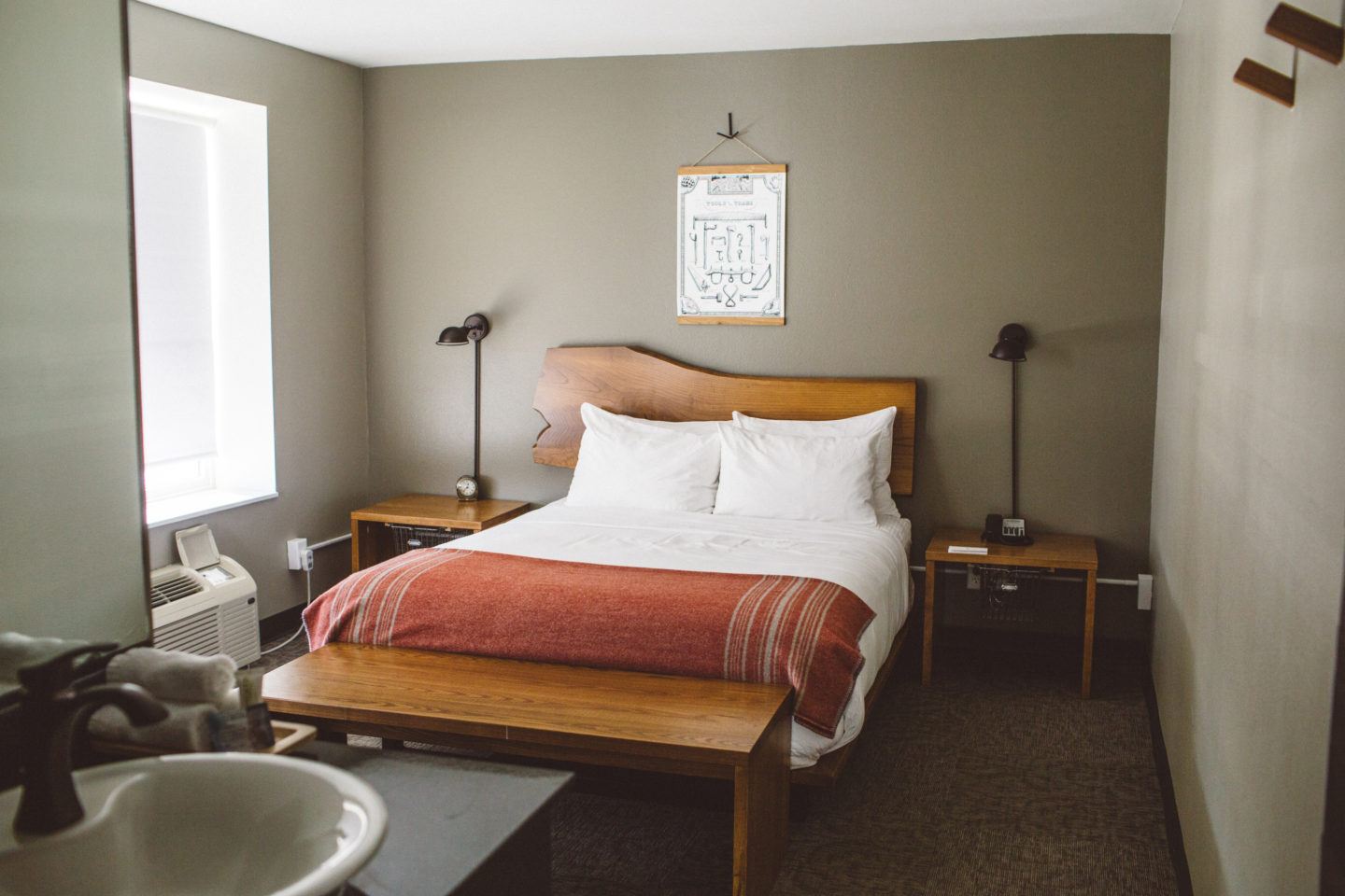 We found indie chic at the Oxbow Hotel in Eau Claire, Wisconsin on our most recent visit to the Chippewa Valley area! I grew up visiting my aunt and uncle who live a few miles outside of town but hadn’t swung by downtown Eau Claire until this year. I was really happy to find this little gem of a boutique hotel that offers everything you want in an Eau Claire hotel. Trendy decor, upscale dining, friendly staff, free coffee in the lobby and record players in the room for a touch of cool – just to name a few things!