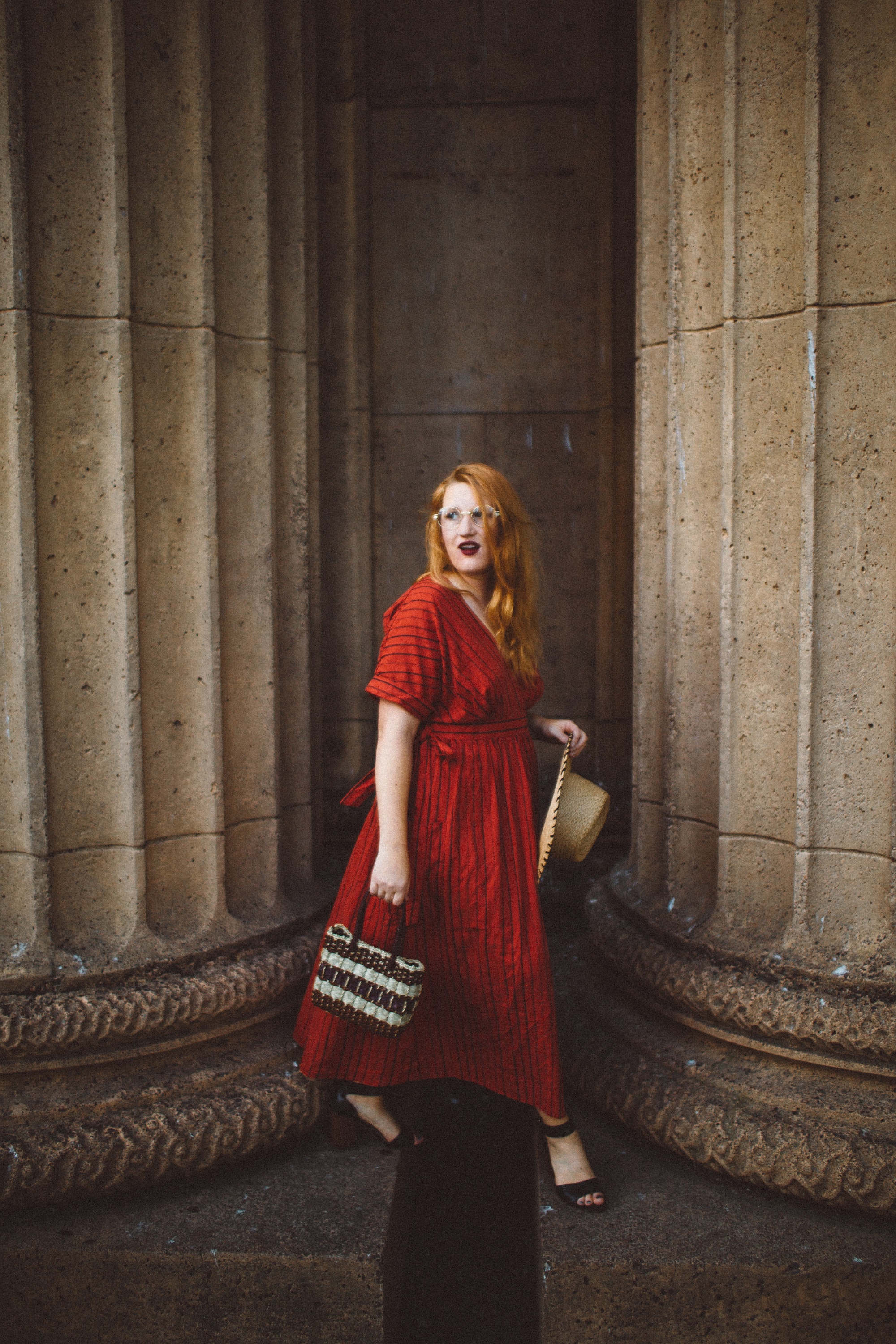 During a warm, sunny evening in San Francisco a few weeks ago, I threw on this cute wrap dress from Urban Outfitters for date night in the Marina. Robin and I love taking walks in new areas around the city and during warm nights, the Marina is a favorite spot because looking at the Bay is always beautiful! This time, we visited the Palace of Fine Arts before heading to the beach for sunset beers.