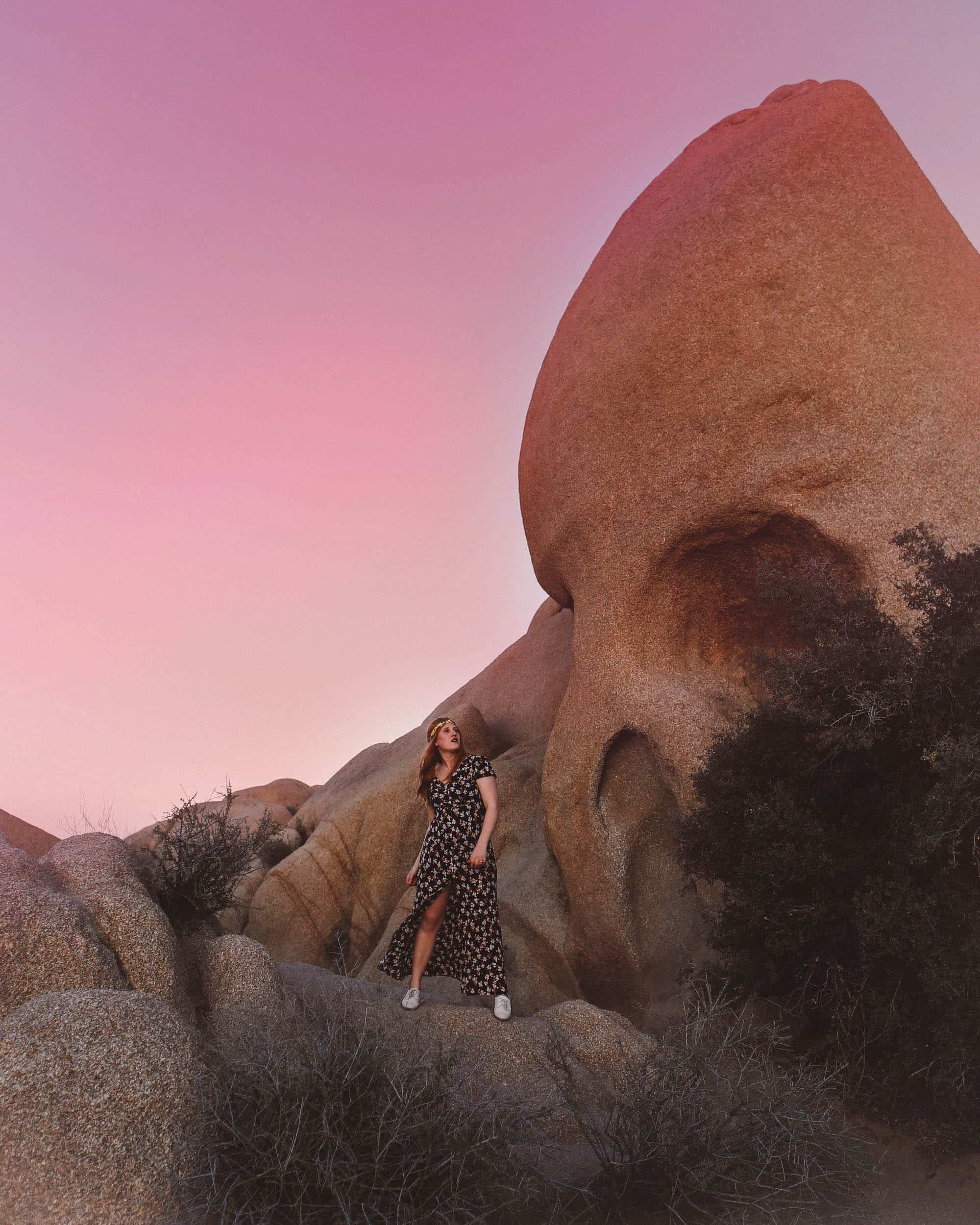 My favorite spot in the park is Skull Rock. It really looks like that! But the park and the city of Joshua Tree has so many other cool corners, like a tiny crochet museum, a giant cowboy statue and more. Read my full Joshua Tree travel guide for more photos and ideas!