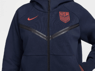 Nike has a plethora of Team USA shoe designs available -from running shoes to chic, subtle slides that you can pair with your daily outfits. They also have cute, sporty windbreakers and pullovers for morning jogs. If you’re on the hunt for very sport Team USA merch, Nike has it right now.