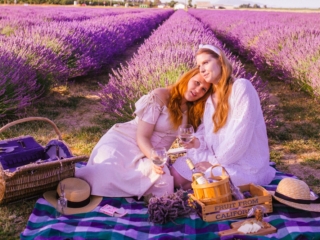 But when I head to places like Lupine flower fields or backyard birthday parties, I get inspired by the colors of the location. Purple flowers = white cottage core dresses and gingham napkins. Picnics in the woods maybe lean to deeper hues like reds, greens and creams. Let the location of your picnic inspire the aesthetic, outfits and even food!