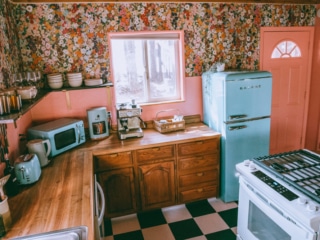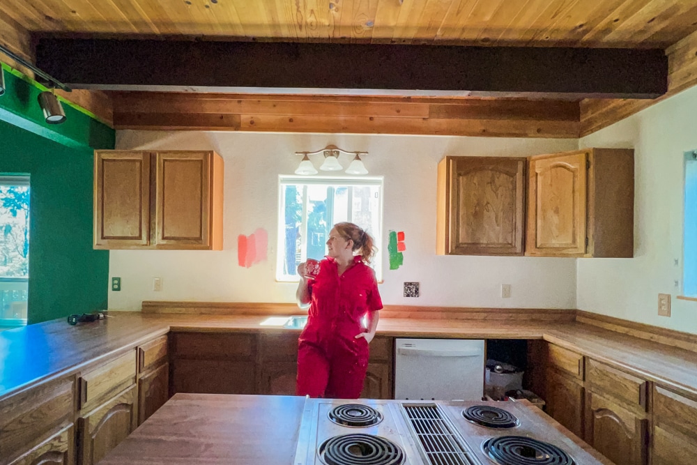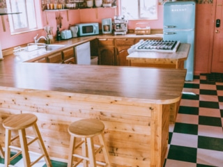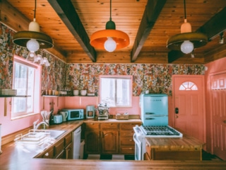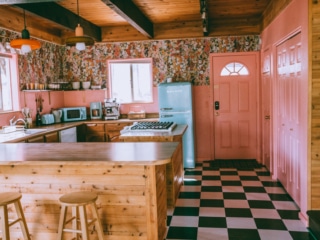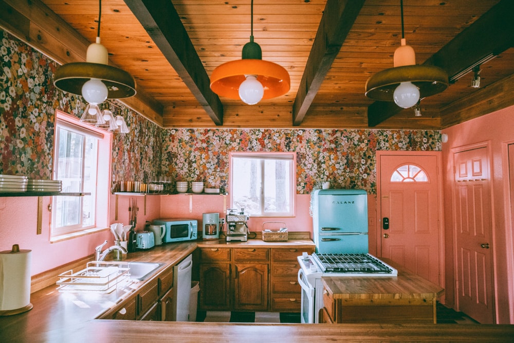 Hey – we turned this cabin into a vacation rental and our target market is fellow girlies like me, so a pink kitchen was right on brief. Plus, it stands out better in Airbnb listings (and pink just makes me smile!)