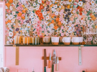 I love our pastel pink kitchen, especially in the summer evenings when the light pours in. It’s just so much fun!! If you’re thinking of shaking up your home decor, go with pink. Not all pink interior design needs to be mega barbie (though we stan that, too).