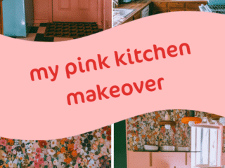 Unlike our living room, which I painted green and had inspiration for right away, it took me a while to decide on a pretty pink theme for the kitchen. I did a lot of collecting of ideas on Pinterest and TikTok, and realized that a pink kitchen design looks best when you lean into the color.