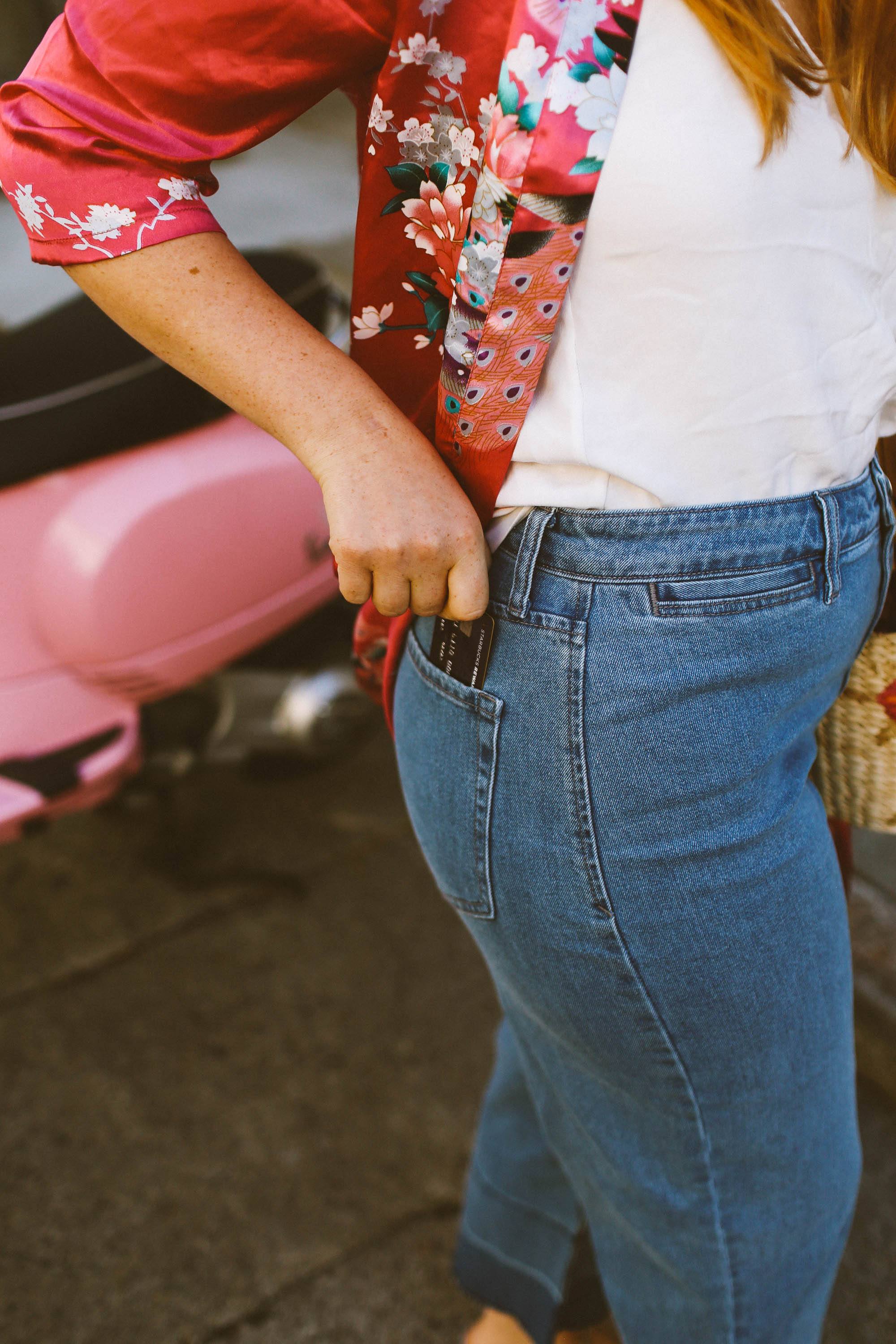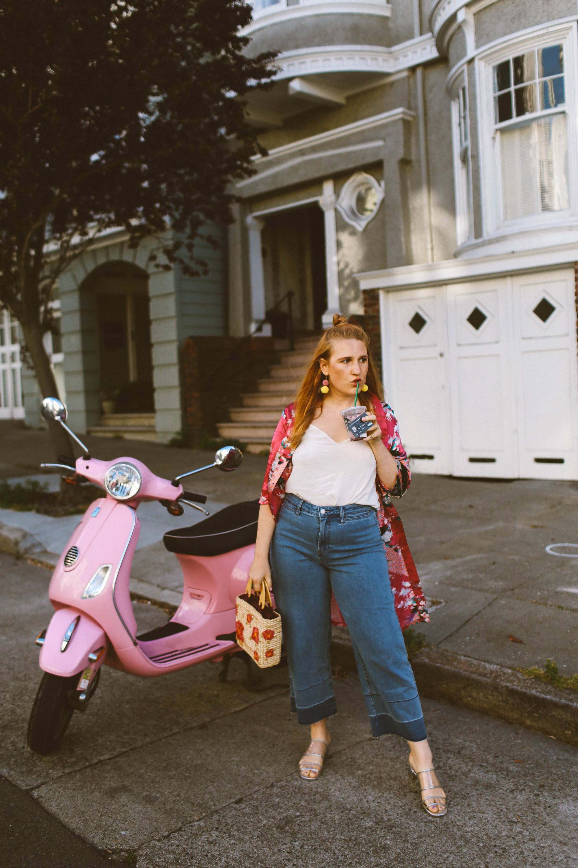 A modern update to the long trench coat style of the 80’s and 90’s is the “long layers” trend. Instead of grabbing a long coat, since the warm months are upon us, I instead dug out this long kimono I bought on a trip to China a few years ago. It hits mid-calf on me and totally embodies that long layer trend!