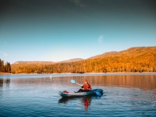 Outside the Oakhurst entrance to Yosemite is Bass Lake, which is another fantastic spot to catch fall colors! It’s usually a summer spot but you simply must rent a kayak at Miller’s Landing and take a brisk autumn paddle around the lake.