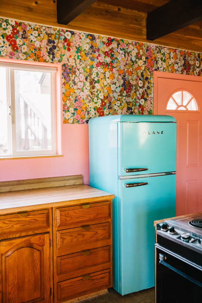 We started by taking down the upper cabinets which were mismatched and just felt clunky in the space. Then added paint, wallpaper and a new fridge but despite all this the kitchen felt off.
