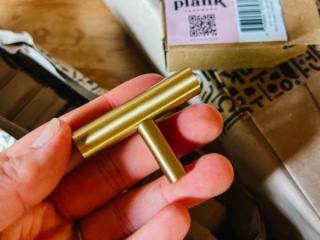 And that helped SO MUCH! They look totally different in person now but they are a little hard to open since they didn’t have pulls and I really wanted to play up the gold/brass theme. So adding Plank Hardware was a no brainer solution here.