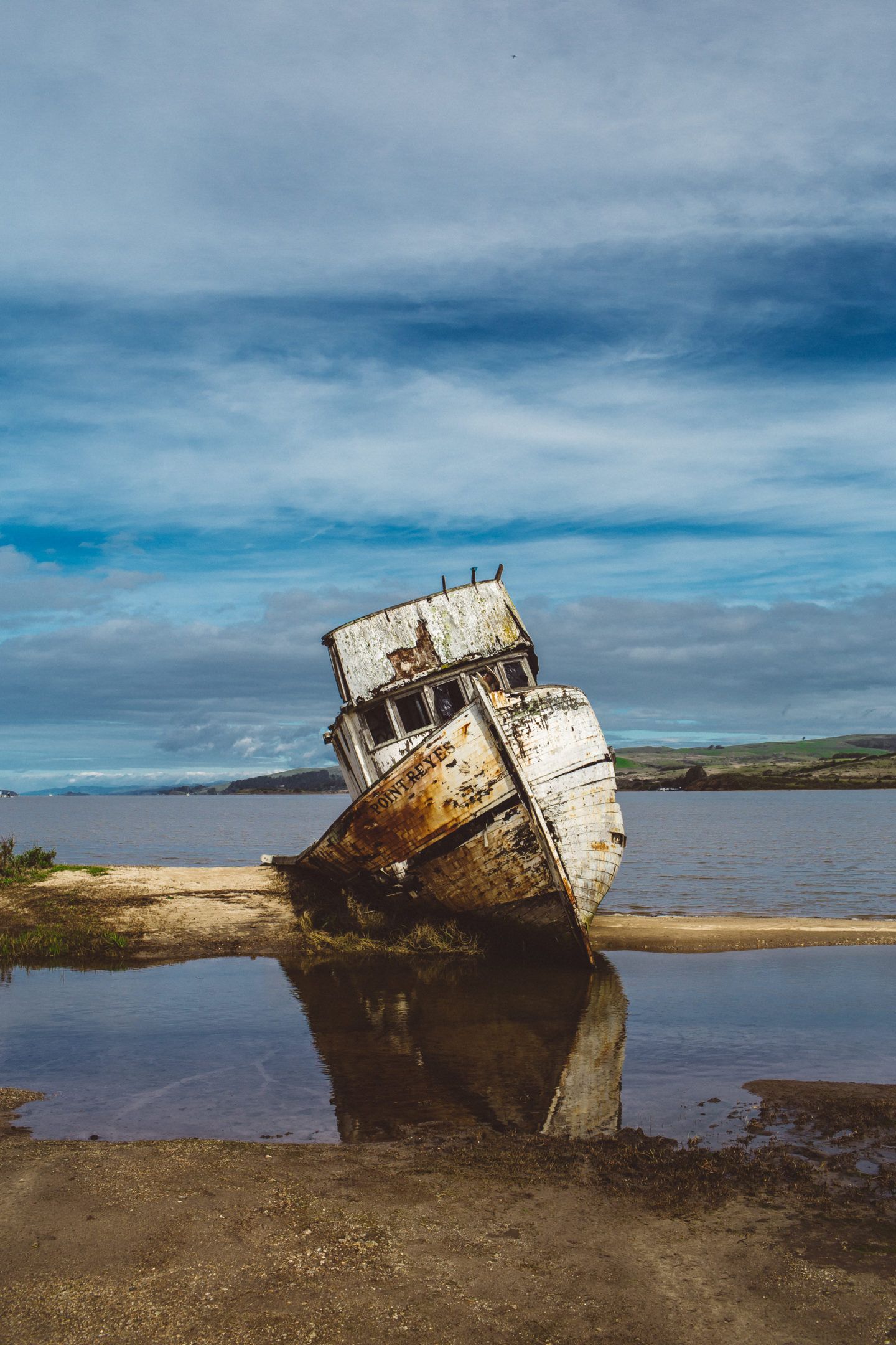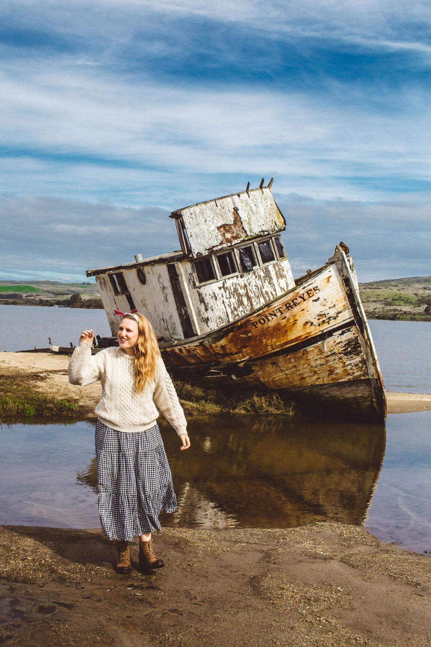 On your way from San Francisco to the Point Reyes National Seashore, you’ll wrap around the South end of Tomales Bay and around the Western side up toward Inverness. Lock your GPS onto the “Point Reyes Shipwreck” and it’ll take you to a small parking lot next to the famous shipwreck! (Also known as the Tomales Bay Shipwreck, the Inverness Shipwreck, or the S.S. Point Reyes.)