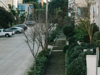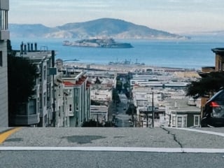I really wanted to rent a Lime scooter or something to ride at these spots for a fun TikTok video but alas, couldn’t get any available. These lookout points are still super fun to visit as you get treated to epic views of the Bay and city. At Mia’s hill, you can see Alcatraz, Angel Island and North Bay in the distance. At Lily’s scene, the Transamerica building and Bay Bridge.