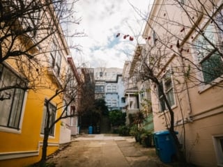 Another fun fact, the real-life location of this house is over 7 miles from “Grove High School”. It took us over 25 minutes to drive from the Firehouse to Mia’s school by car on a quiet Sunday afternoon, so I imagine during rush house it’s a lot longer. And by scooter? Forget about it. All us local SF residents like to chuckle/yell at the tv screen when we see Mia try and scooter her way to school from that distance.