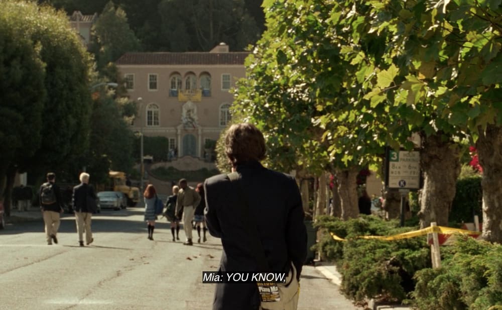 This same corner was later used when Michael and Mia are walking to school and he invites her to his band show on Saturday, which she later skips for the Baker Beach party. You can easily find the houses they walked by, though now many of them are repainted.