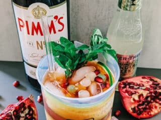 This winter Pimm’s Cup recipe combines ginger, gin and pomegranate to create a marvelous mix of punchy fruitiness. Garnish with pomegranate seeds and boba pearls for big bursts of flavor.