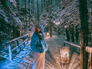 At night we wandered through Onhwa’ Lumina, a forest light show that told Wendat stories with music and art. We visited on a night it was snowing hard and wandering through their experience under the falling snow was one of the most magical holiday experiences I’ve ever had.
