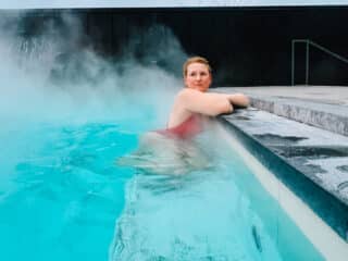 I booked late afternoon tickets at Strom Spa, soaked in outdoor hot pools as steam rose into the cold air, took a brave cold plunge, then ate dinner in my robe at Nord. Eating salmon and soup by the river after a soak is peak winter decadence.
