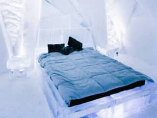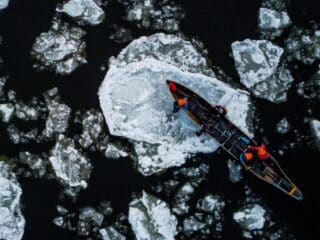 You bundle up, paddle through slush and ice with a guide, and end it at the ice bar and Nordic Spa.