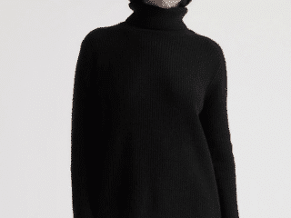 And, if you were looking for a little more warmth (looking at all you who live in the Midwest) the Quince Cashmere Fisherman Turtleneck Sweater provides more coverage.