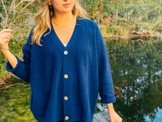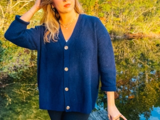 The Oversized Boyfriend Cardigan Sweater is a decent bit thicker than the crewneck, and I wouldn’t say it’s quite as soft, but it will definitely keep you warm and cozy throughout the winter months.