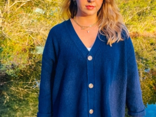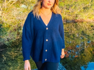 I sized down in the oversized boyfriend cardigan, and got my regular size in the cashmere crew neck. Both of which were spot on!
