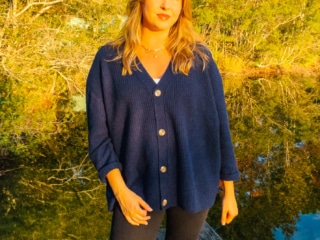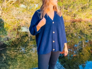 My boyfriend cardigan is a size XL since I wanted that oversized look and again, it totally hit the mark on sizing. Three cheers for accurate, reliable Quince size charts on the sweaters!