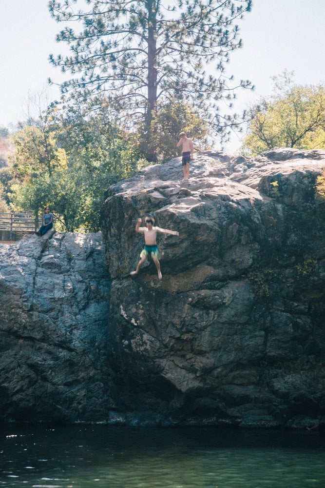 Water levels in the Sierra Nevada Mountains vary from year to year (remember nature is on her own schedule) so the area may or may not have high water for the waterfall. That being said, Late May-August is usually a safe bet that the waterfall will be flowing and the pool below will have tons of water in it to swim in.