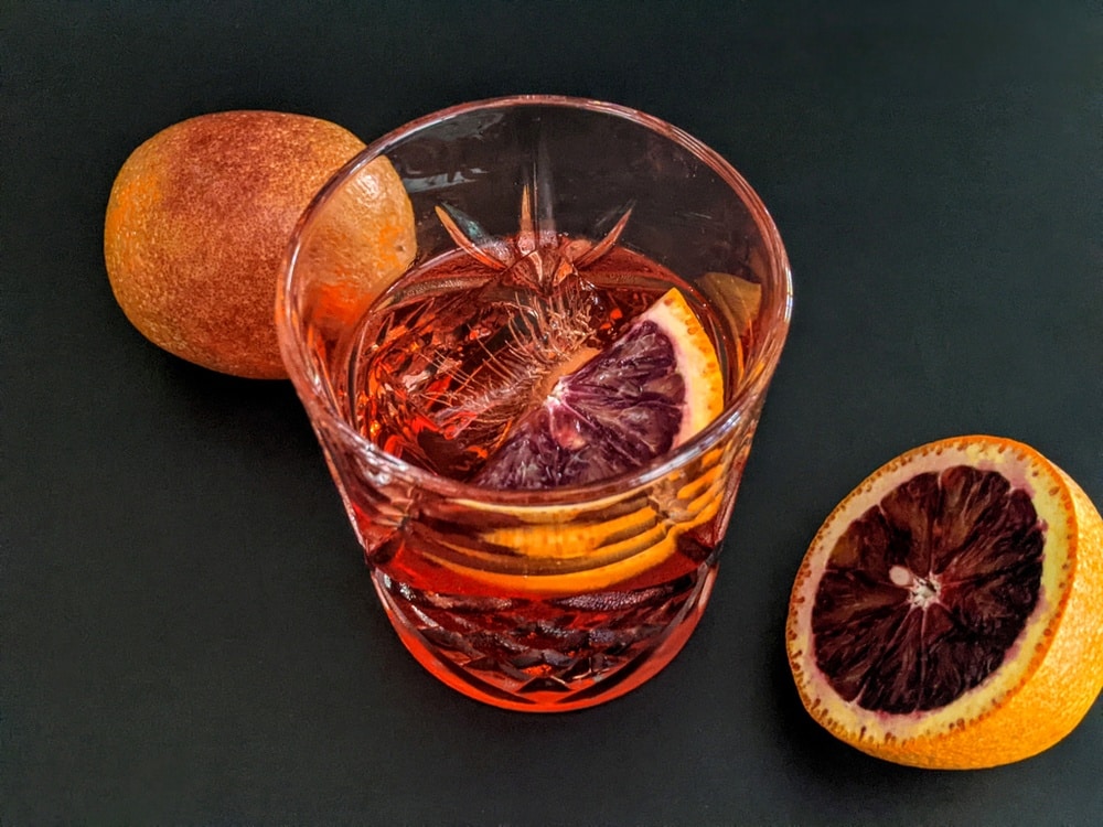 Enter the ever-popular Negroni. To add a Russian twist to this classic aperitif, I decided to swap the gin for vodka. And as another nod to our lethal leading lady, I’m garnishing this cocktail with blood orange.