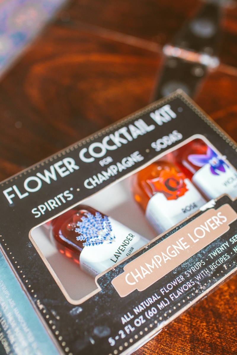 While shopping at Macy’s a few weeks ago, I found this champagne flower simple syrup kit and got so excited about the idea of making things like lavender champagne or bubbles with violet (I’ve never even heard of a violet champagne before, it would be a totally new flavor profile!) We’ve been waiting for a special evening to break out the different syrups and though the premiere of the new Bachelorette was perfect!