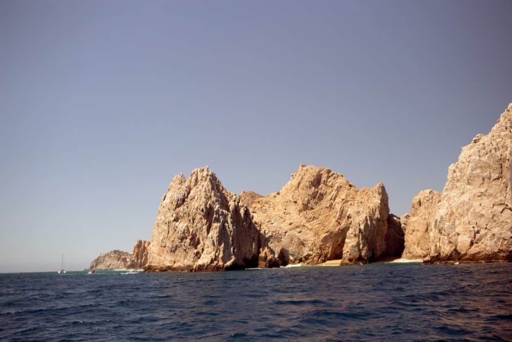 The most famous place to visit while sailing in the ocean in Cabo is El Arco! It’s near Pelican Rock at the end of the peninsula that jets out from town. Boats aren’t allowed *that* close to the arch for safety reasons (so don’t expect to sail through the arch or anything) but as you can see from photos, we got pretty close.