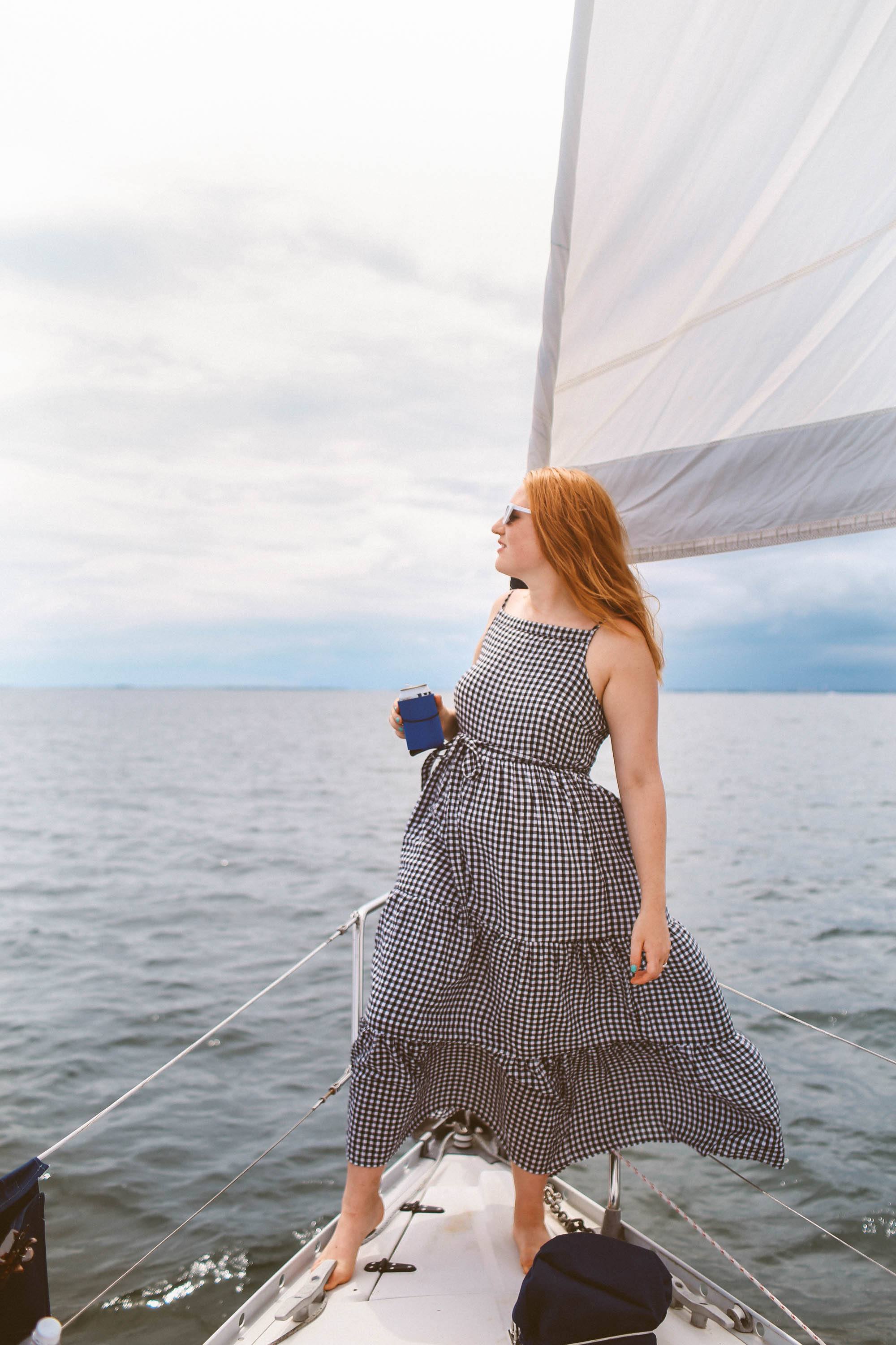 For the sail, I wore this pretty gingham midi dress from Old Navy with these retro sunglasses from Amazon. This dress is light and breezy, perfect for a summer sail. Make sure to wear sunscreen! You can learn about my favorite sunscreens right here. Happy sailing!