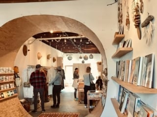 A minimalist boutique with a dreamy greenhouse in back and a photo-perfect circular arch inside.