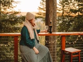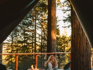 They have an accessible treehouse with epic views, a kitchen to make meals and store wine, a heated tent witha heated blanket to stay cozy at night, and a bathroom with a shower! Plus, a firepit to roast marshmallows next to all night long.