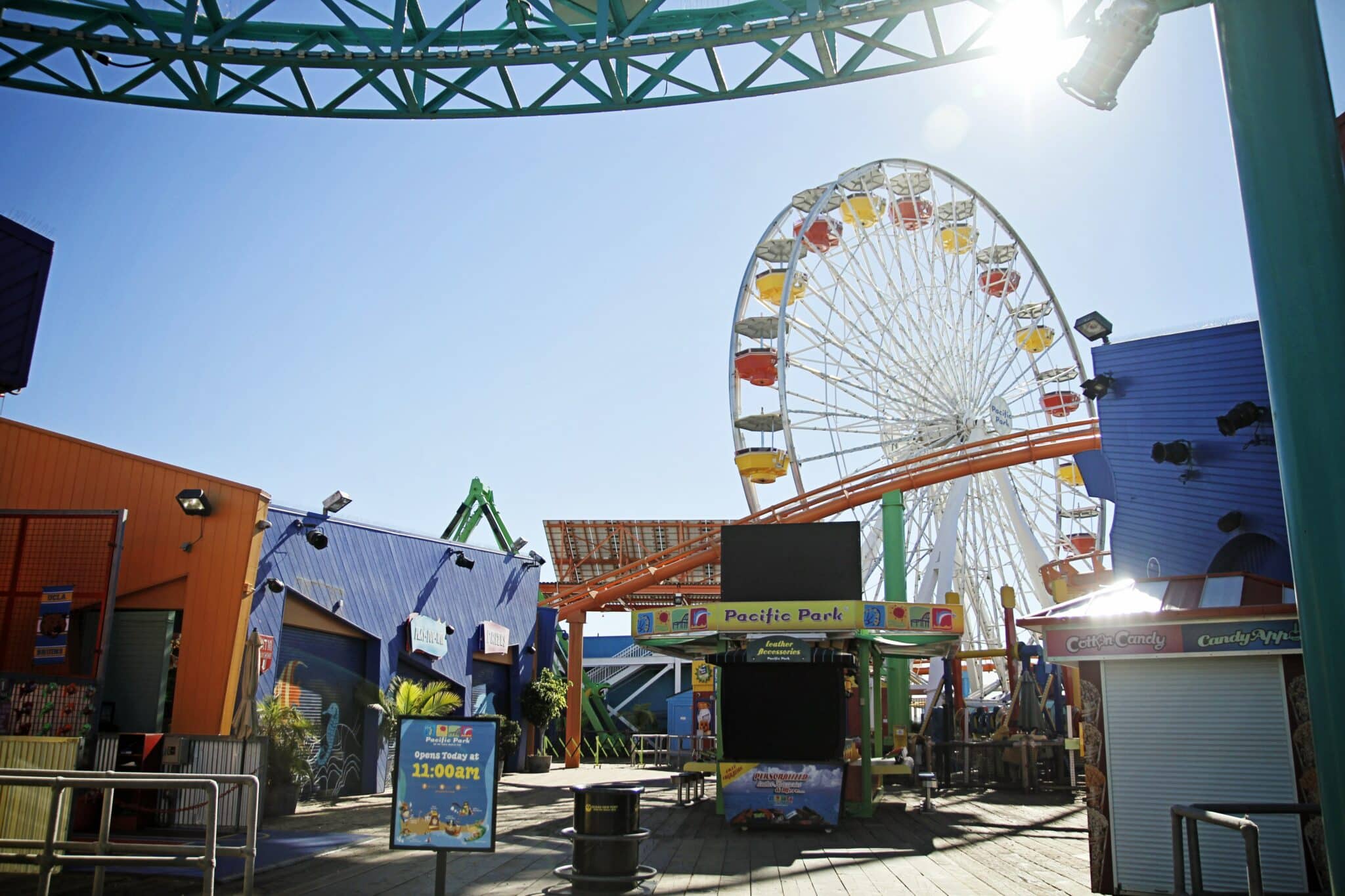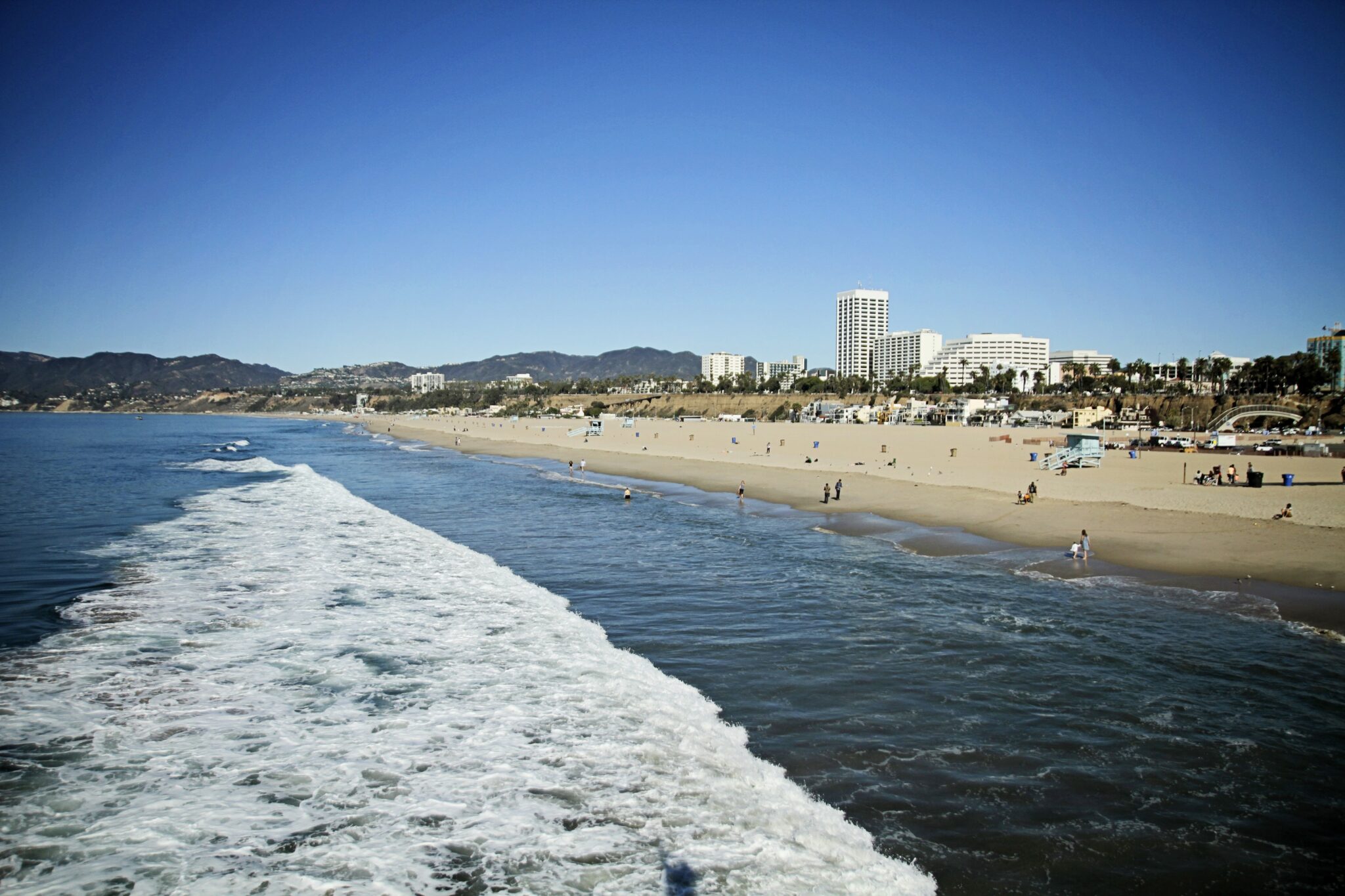 We arrived in Santa Monica around midnight and had a little problem with our hotel (more on that later!), but still woke up to blue skies, warm temps and palm trees for as far as the eye could see. Like an excited little kid, I set my alarm early and get us out of the hotel and down to the Santa Monica Pier before 10:30am. We both really liked getting to walk the pier without being surrounded by a huge crowd. We even got there before the rides had started!