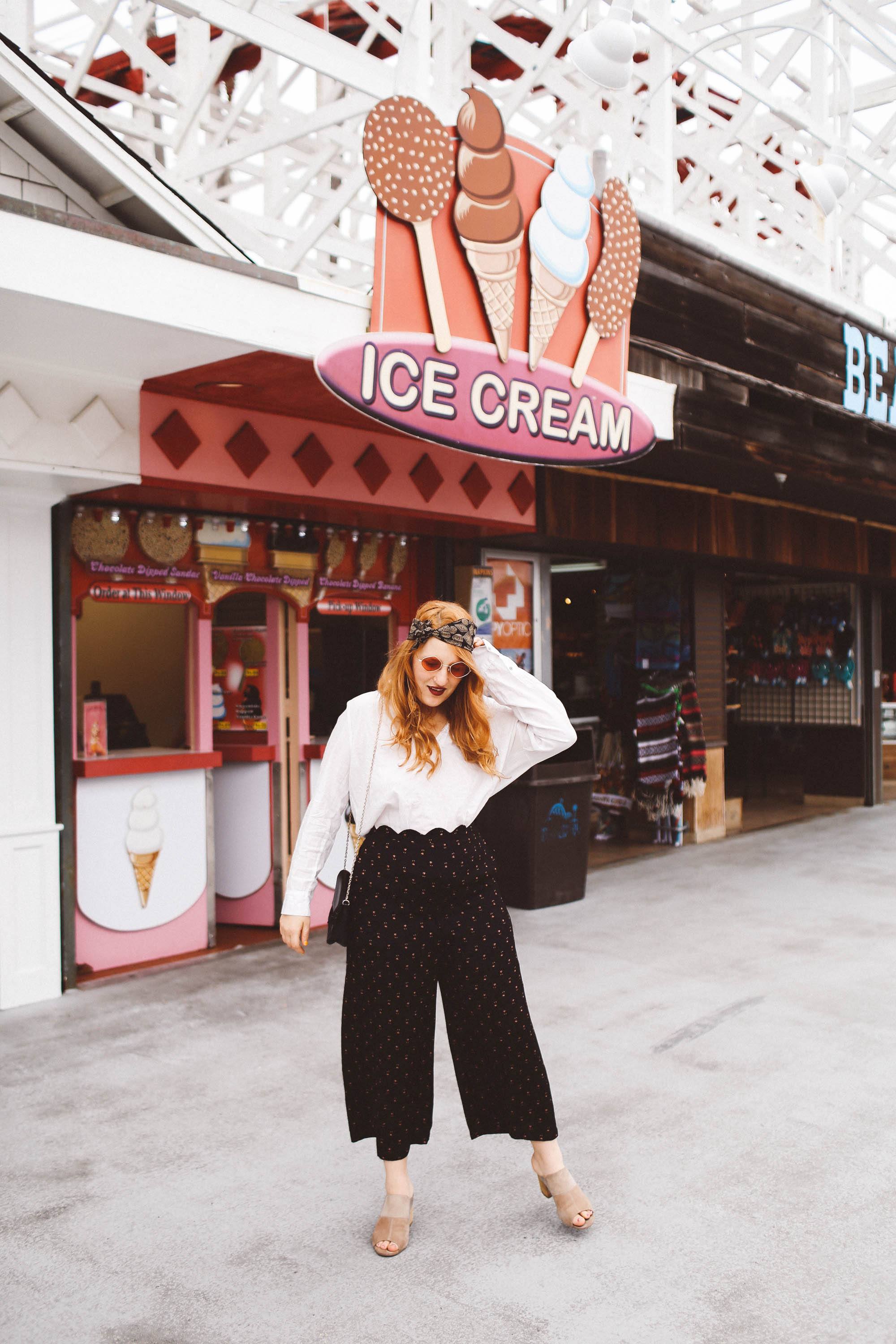 I’ve discovered scallops on the waist of pants/shorts/skirts about a year ago and I think they’re a brilliant design trend. Button or zip waistbands can be really uncomfortable when your body type isn’t stick-thin. Normal waistbands are, well, normal and a bit boring. But scalloped trim? Now that’s interesting! Scalloped pants are playful and feminine while being chic, all at the same time. You can dress them up in a polished outfit as your statement piece, or dressed down in a boho, free-spirt style like I did here.