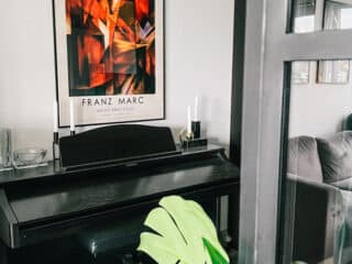 Lastly, in the corner, you’ll want to put green standing plants like elephant ears or monstera plants. Don’t feel like you need to stick to white walls only.