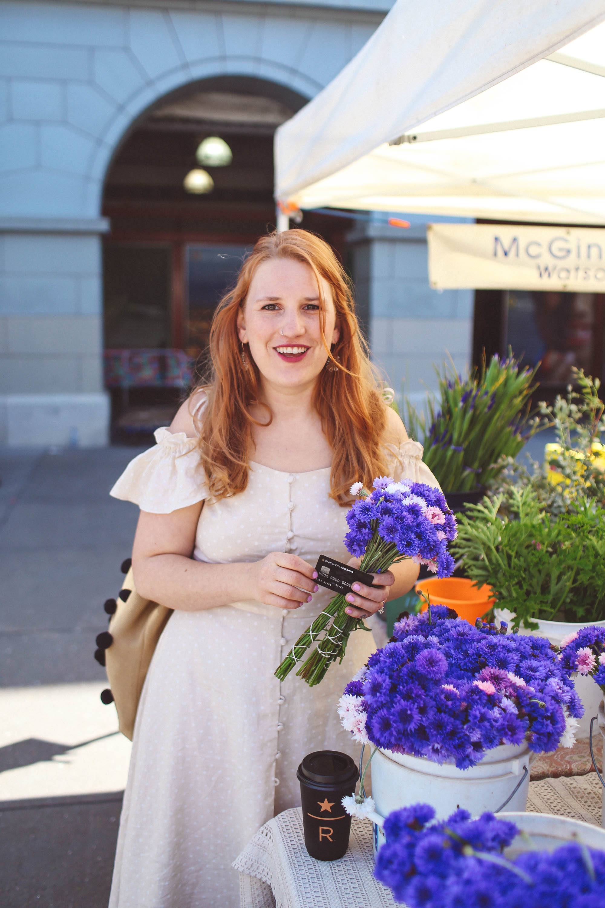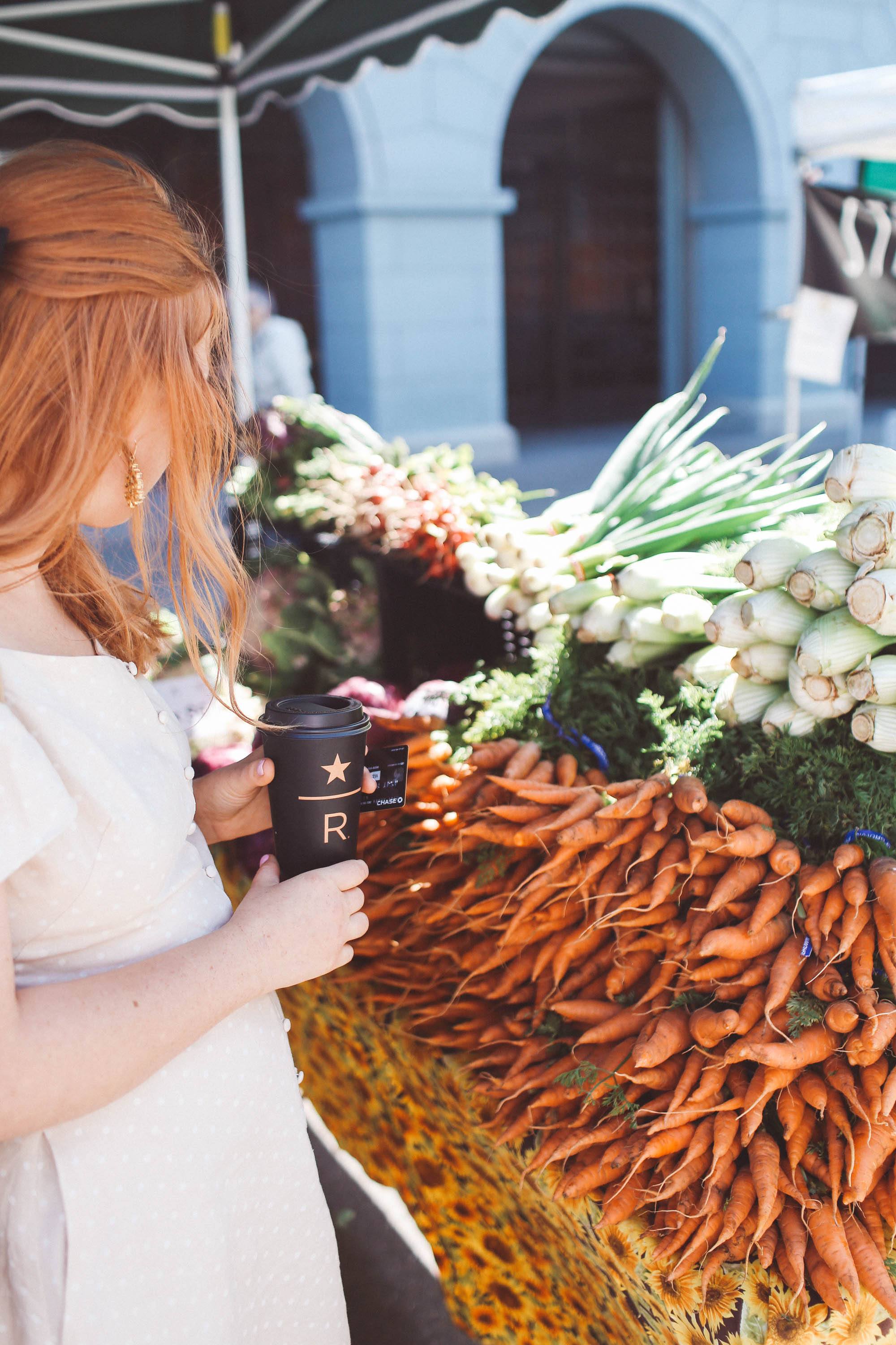 To start, we love to swing by the new Starbucks Reserve Bar in SOMA to treat ourselves to a Reserve blend (my favorite is the Rose Honey Latte!) and earn ourselves Stars through our Starbucks Rewards Visa Card. If we’re in a hurry, I can order the drinks through the Starbucks app ahead of time, but when we’re not rushed, we sometimes like to sit down and enjoy the bar a bit before heading off to the market. If you aren’t familiar with the Starbucks Rewards Visa Card, you get instant Gold Member status by joining and a lot of other perks, like earning Stars for purchases everywhere. Stars help you earn drinks so we can do more farmer’s market days!