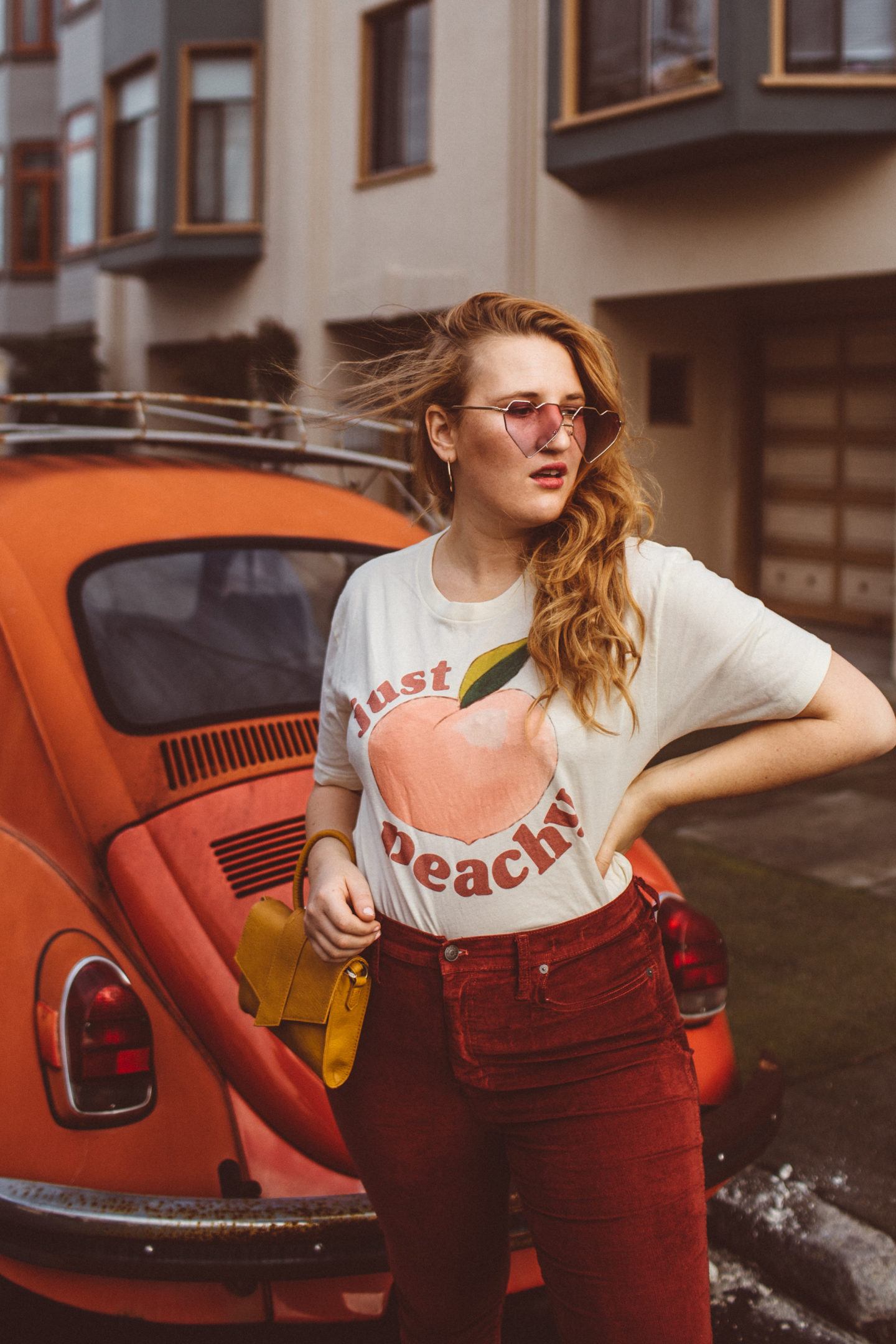 In these photos, I’m wearing their women’s “Just Peachy” tee, which pairs so well with pretty much any kind of bottom, but especially with high waisted jeans. I don’t have children, but if I did, I would totally be over the moon to have a matching t-shirt and onesie with my daughter. They also sell toddler tees! Anything from Raising Tito would make an excellent gift for Mothers with littles in your life.