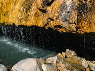 Buckeye Hot Springs along Buckeye Creek are special for a few reasons. There’s multiple tubs all with drastically different temperatures. It has this rad little cave situation going on with a waterfall, which I’ve never seen before, meaning you can find shade while soaking.