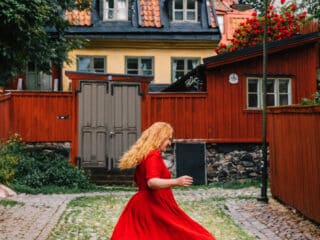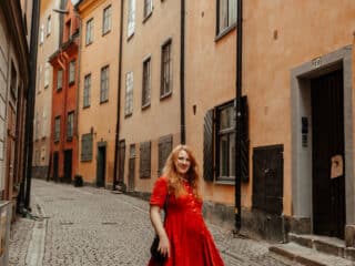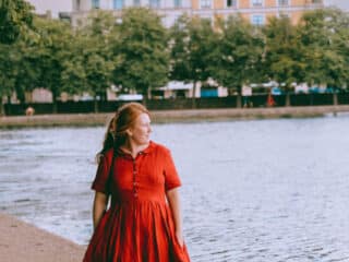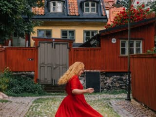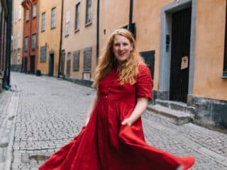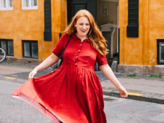 Classic white? Spring green to pop against my red hair? Bright blue? But I finally landed on this beautiful red poppy color that works perfectly for all seasons. It’s light enough for summers running around Scandanida, but the color and style will also be so fun to wear come Christmas time. On my quest to build a capsule wardrobe (which is really hard to do a fashion blogger, let me tell you!) this dress has already proven itself versatile. Plus it looks cute with sneakers, boots, heels and flats.
