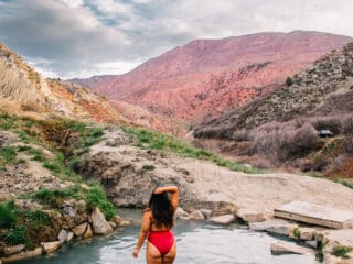 These hot springs pools are literally so close to the parking lot, it’s best to wear sandals so you can get dressed and put on your shoes at your car after your soak instead of struggling outside. Trust me on this!