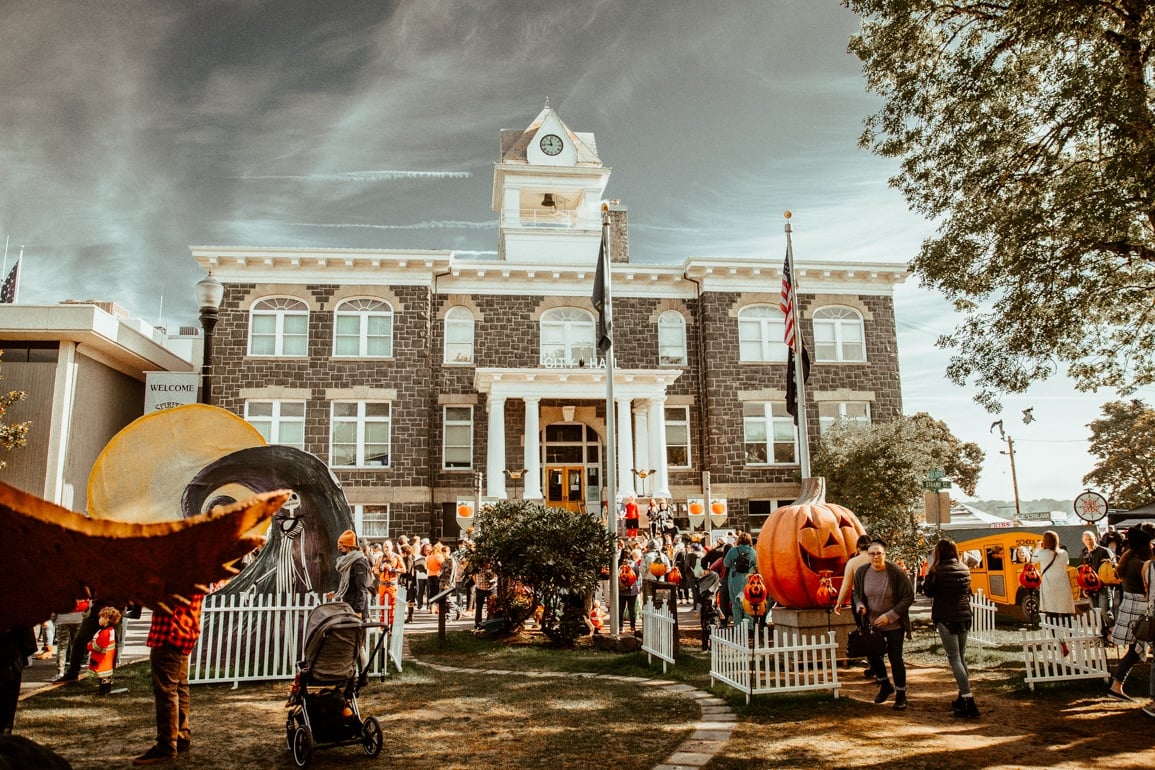 - City Hall/Courthouse Plaza: Halloweentown Plaza at 275 Strand Street