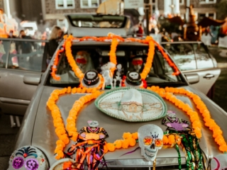 Almost everyone was in a costume, the vendor village was popping with food and beer, there was a costume contest happening on the steps of the Courthouse and tons of themed cars lining the plaza around the Halloweentown Pumpkin.