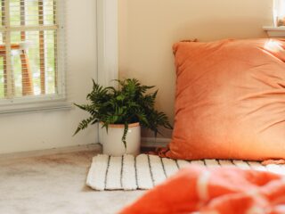 Think man cave, but filled with items (or just empty space) that bring you peace. This could be a cute floor cushion, yoga mat, snugly blanket, or cozy reading chair! Creating zones is key for managing your mental well-being. For example, you only sleep in your bed and work at your desk. So your brain knows when to shut off!
