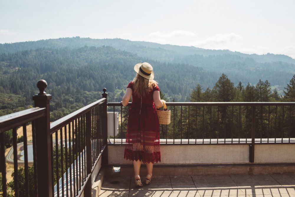 With a little site map and signs to follow for the tasting tour, we walked around various points and sipped on more wine, ending at the stunning terrace. From here, you can see the whole valley. The view is breathtaking. You can even spot the Napa castle winery on the neighboring hillside, which really adds to the whole “Europe” vibe.