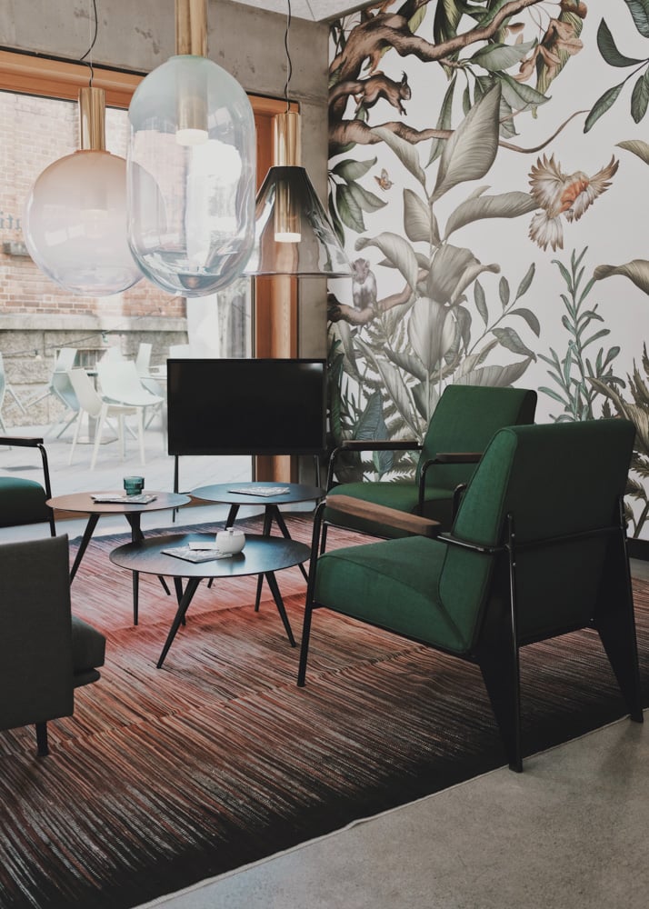 This art deco-inspired print is understated but super elegant. I feel like dark walls can be frowned upon but the gold details break up the darkness and keep it interesting. If subtle isn’t your thing, this bold tropical design gives White Lotus vibes (in the best way)!