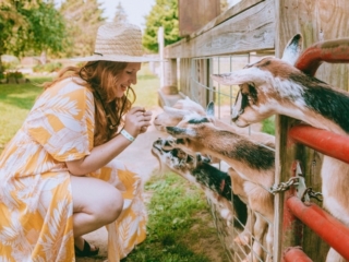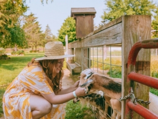 And of course, they have a massive sunflower field! You can’t see the sunflowers from the road but trust me, it’s amazing. You can walk the distance to the field or hop on a wagon for a ride. You can’t cut flowers in the field but you can buy them at the farmers market after. You should budget about 1.5 hours for this farm visit as there’s so much to do. Make sure to buy a bottle at checkout so you can feed the baby goats, too!