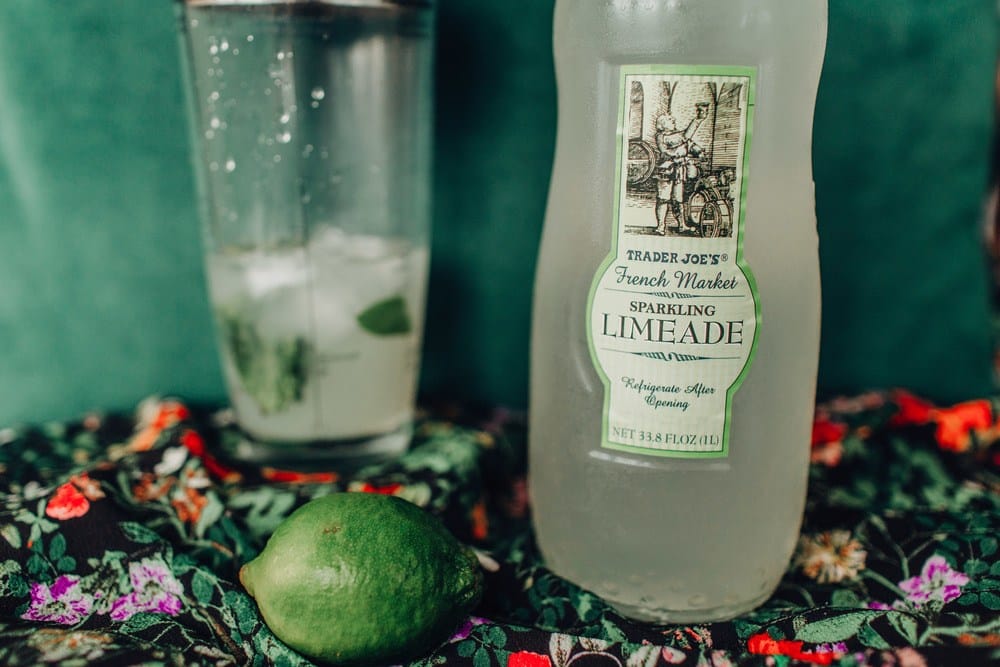 My new favorite hobby is picking up different sodas and waters at Trader Joe’s and trying to make cocktails with them. Since it’s summer, and limeade was my favorite summer drink growing up, I wanted to try their Sparkling Limeade.